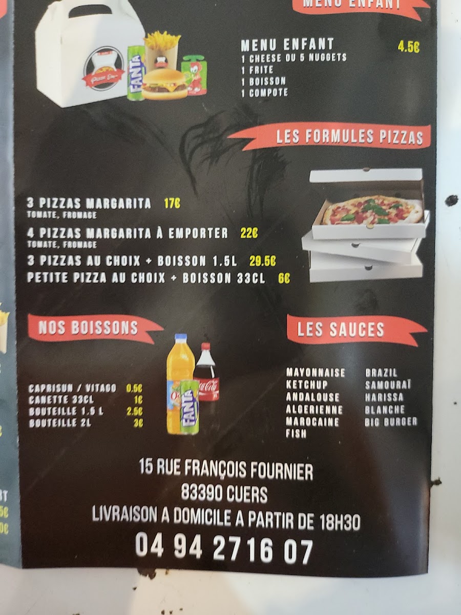 Introducing the menu at Pizza One, a distinguished pizza restaurant nestled in the heart of Cuers, France. Renowned for its delectable wood-fired pizzas, Pizza One elevates your culinary experience with a diverse and enticing menu that caters to all palates. Customers rave about the vibrant flavors and generous toppings, ensuring satisfaction with every bite. The wood-fired cooking process not only enhances the taste but also leaves a memorable impression on the diner.